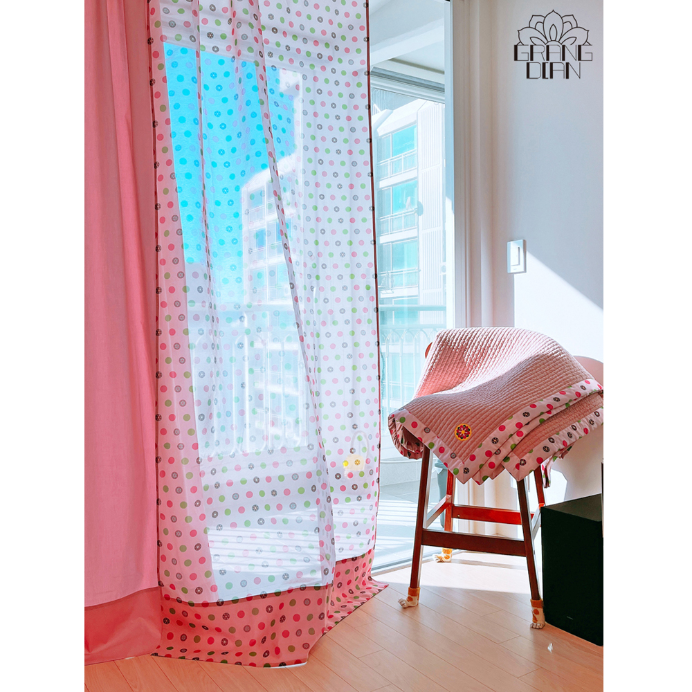 - 단청도트 다용도 손수건 (노을 핑크색)